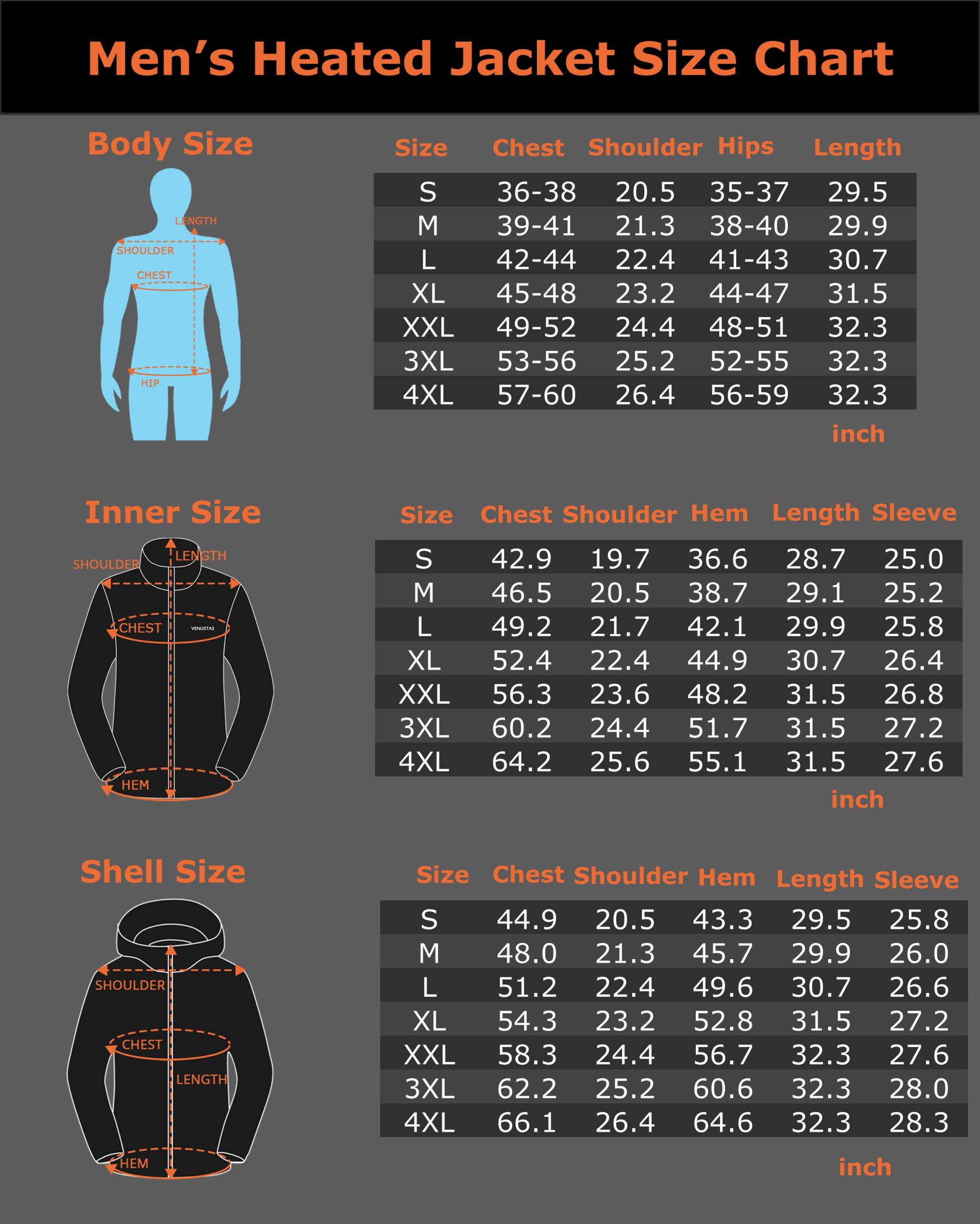Unplug the battery if not to be used for a long time.Customer ReviewsThank you for submitting your reviewBased on 14 reviewsAverage Rating 5.0 stars out of5.0/5Filter 14 Reviews with 5 star rating5(14)Filter 0 Review with 4 star rating4(0)Filter 0 Review with 3 star rating3(0)Filter 0 Review with 2 star rating2(0)Filter 0 Review with 1 star rating1(0)Write a ReviewAsk a QuestionReviews 14Questions 0ReviewsQuestionsSort by:Write a ReviewNameEmailRatingRating ZeroOne StarTwo StarThree StarFour StarFive StarTitle of ReviewHow was your overall experience?Do you recommend this product?YesNoUpload PictureSubmit Your ReviewCancelJonathan AdamsJ. A.Jonathan A.10-11-2023Nice but runs very smallVery nice jacket. Works as expected. But it runs very small. I ordered it a size larger than I wear and it is almost too small. Would have like a size larger. I wear an clothes. Ordered a xxl and it fits like a large.10-11-2023Thank you for your approval! We’re thrilled to hear that you’re enjoying your clothes. Your satisfaction is our top priority, and we’re delighted that our product met your expectations.Lauren LewisL. L.Lauren L.09-11-2023This is the best located jacket, I wear it all the time!! Great product!This jacket is lightweight and warm! I don’t wear any other winter jacket and I live in Michigan09-11-2023Thank you for your approval! We’re thrilled to hear that you’re enjoying your clothes. Your satisfaction is our top priority, and we’re delighted that our product met your expectations.Kyle HarrisK. H.Kyle H.08-11-2023ValueThis heated jacket was so nice that I ordered one for my husband. Both fit great and were easy to use!08-11-2023Thank you for your approval! We’re thrilled to hear that you’re enjoying your clothes. Your satisfaction is our top priority, and we’re delighted that our product met your expectations.Taylor WrightT. W.Taylor W.06-11-2023My wife loves itBought this for my wife as a gift and I think she was a little skeptical at first. 2 days later we had to stand outside for a very cold football game and she put it to use and loved it. It kept her warm through the whole game and she loves the neck area having it’s own warmer. We have even had several people borrow it for outside ball games to see if they liked and eventually ended up purchasing it.06-11-2023Thank you for your approval! We’re thrilled to hear that you’re enjoying your clothes. Your satisfaction is our top priority, and we’re delighted that our product met your expectations.Matthew HallM. H.Matthew H.05-11-2023True to size, but sleeves a little longTrue to size; however, sleeves a little long05-11-2023Thank you for your approval! We’re thrilled to hear that you’re enjoying your clothes. Your satisfaction is our top priority, and we’re delighted that our product met your expectations.Ryan DavisR. D.Ryan D.03-11-2023Bought the jacket for my son who has to stand outside early mornings for the bus and also at football games. Jacket came as ordered, but I probably could have gotten a medium for him and not a large.03-11-2023Thank you for your approval! We’re thrilled to hear that you’re enjoying your clothes. Your satisfaction is our top priority, and we’re delighted that our product met your expectations.Megan RobinsonM. R.Megan R.02-11-2023GreatEverything came ! Fast and packed nice . Came with battery and jacket kept very warm .02-11-2023Thank you for your approval! We’re thrilled to hear that you’re enjoying your clothes. Your satisfaction is our top priority, and we’re delighted that our product met your expectations.Brianna GarciaB. G.Brianna G.31-10-2023Great customer serviceI brought 4 and we all love it! Work great when we go fishing! Keeping us warm and charge our phone as the same time! It keeping our body heat pretty well even when it was off!!!31-10-2023Thank you for your approval! We’re thrilled to hear that you’re enjoying your clothes. Your satisfaction is our top priority, and we’re delighted that our product met your expectations.Christopher ClarkC. C.Christopher C.30-10-2023Great JacketI’ve worn the jacket once so far (haven’t really needed it yet) it looks nice, Quality is good and the fit is good.Haven’t had the opportunity to use the heater yet but will soon i’m sure.I’m very happy with my purchase.30-10-2023Thank you for your approval! We’re thrilled to hear that you’re enjoying your clothes. Your satisfaction is our top priority, and we’re delighted that our product met your expectations.Robert TurnerR. T.Robert T.28-10-2023ExactI was very excited to get my jacket today! I tried it in before I did anything else and it was a perfect fit. I ordered one size up from my normal size because I enjoy sweaters and hoodies. Then I plugged in the battery and it works great! It heated up nicely and felt so cozy. It did not come with a mesh bag for washing so I will need to find one.28-10-2023Thank you for your approval! We’re thrilled to hear that you’re enjoying your clothes. Your satisfaction is our top priority, and we’re delighted that our product met your expectations.Samantha LopezS. L.Samantha L.27-10-2023Very light jacketGood jaket27-10-2023Thank you for your approval! We’re thrilled to hear that you’re enjoying your clothes. Your satisfaction is our top priority, and we’re delighted that our product met your expectations.Jonathan KingJ. K.Jonathan K.26-10-2023Great Heated Coat!I ordered a size larger than my normal size because I don’t like my coats to fit tight and I want them big enough to go over whatever else I’m wearing. This coat fits as expected. The battery came charged up to about 70%. Everything worked as expected and it came with a nice carrying bag. I charged the battery up to 100% and have been using it everyday since our temps right now are not getting above 35 degrees outside. The batter pack is fairly large and somewhat heavy, so you do feel that weight in the pocket. So far I love this coat and am wo