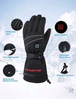 The internal part includes the carbon fiber heating element, which is the thinnest, strongest, and most flexible known material.It features remarkable electrical and thermal conductivity, and damage-proof ability.Crafted with lambskin & polyester, the shell of the heated gloves is water-resistant & windproof while still featuring excellent breathability.Anti-lost Buckle & Labor-Saving One-pull Closure prevent snow or rain from flowing into the gloves.TouchscreenCompatible IndexSheepskinLeatherWaterResistantHeating SystemExcellent Heating PerformanceCarbon Fiber Heating Elements cover your 10 fingers and the back of the hands. No more cold hands!3 Heating Levels. The rechargeable heated gloves feature 3 heating levels (low, medium, high). You can adjust the level to enjoy different warmth by pressing the button.3hrs on high, 5hrs on medium, 7hrs on low setting.Portable & Reliable BatteryTwo 7.4V/2000mAh batteries reach the desired heating temperature within seconds and heat up to 8hrs to ensure extend warmth.The battery features a small size with a weight of 70g, allowing for easier placement and greater ease of movement.Take 2 hours to fully charge the batter with an 8.4V/1A charger.CE, FCC&UKCA certified. Ita??s easy and safe to use with an easy-to-access button.Materials & CareMaterialsShell: 35% Genuine Leather+65% PolyesterFilling: 100% PolyesterLining: 100% PolyesterCareHand WashableDo not iron.Do not dry clean.Do not machine dry.Heating ElementHeating ElementGrapheneHeating ZonesWhole PalmHeating ModePre-heat: Red| High: Red |Medium: White| Low: BlueTemperatureHigh: 131a??/55a??, Medium: 113a??/45a??, Low: 100a??/37a??Working HoursHigh:3HRs, Medium:5HRs, Low:7HRsHeating LevelWarmBattery InformationBatteryLithium-ion Battery (with LG cells)Capacity & [email protected](15wh???Size & WeightSize:2.72??1.73??0.55in, Weight: 2.61oz/70gBattery InputDC 8.4V/1ABattery OutputDC 7.4V/0.8ACharging Time2 HoursApparelFitRegularLengthHip-lengthShell35% Genuine Leather+65% PolyesterFilling100% PolyesterLining100% PolyesterFeatureWater ResistantGeneralCareHand WashableOcassionsChristmas, Halloween, Thanksgiving Day, Valentine’s Day, Father’s Day, Labor Day, New Year, Sports events, Gift IdealSport TypeRunning, Motorcycling, Cycling, Hiking, Skating, Walking, Snow Skiing, Hunting and Outdoor LifestyleWarranty1 year on Battery1 year on Heating Elements (official website only)User ManualUser Manual DownloadHow long does shipping take and how can I track my package?Usually delivering within 5-7 business days. You can track your package here:https://venustas.aftership.com/Are heated gloves?safe?Yes, our heated gloves are safe. However, please ensure not to use the heating function until the heated gloves are completely dry. Additionally, if you have a cardiac device, it is advisable to consult with your doctor or the pacemaker manufacturer before using heated gloves.Can I wash heated gloves?Recommend hand washingCan I take?heated gloves?on a plane?Yes, our heated gloves are TSA-friendly. Both the power bank and the heated hand warmer can be taken on the plane. However, please note that if you need to check in the heated hand warmer, remember to take out the power bank and carry it with you.Can I wear?heated gloves on an airplane?Yes, both our heated gloves and battery can be taken on the plane. Generally, you can use it’s heating function on the plane. However, you should always follow the specific guidelines and requirements of the airline.How long does the heated gloves last?High:3HRs, Medium:5HRs, Low:7HRs (All heating area working ).How to choose the right size?Choosing the right size is easy! Simply refer to our size guide, which you can find on the product page. Measure your chest, waist, and hips, and match the measurements to the corresponding size on the chart. If you have any specific questions or need assistance, feel free to ask. We want to make sure you get the perfect fit!What power bank for heated gloves?To ensure better results and a longer service life of the heated vest. Please use our special Venustas-5000 power bank.How to turn on heated gloves?To turn on,press and hold the power button for 3 seconds. The?hand warmer will begin to preheat for 5minutes (blinking red LED).