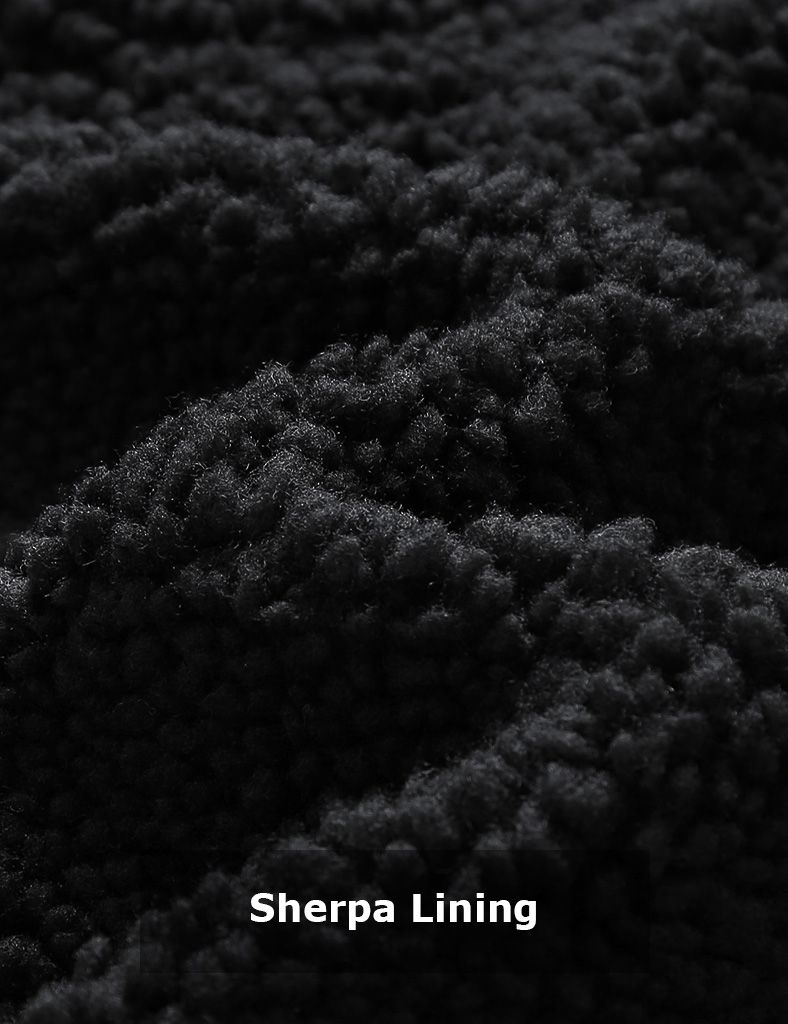 – Sherpa lining: The entire inside is not lined with sherpa but enough that you feel all of it one your neck. The outside hand pockets are also lined with the material and feels very nice.