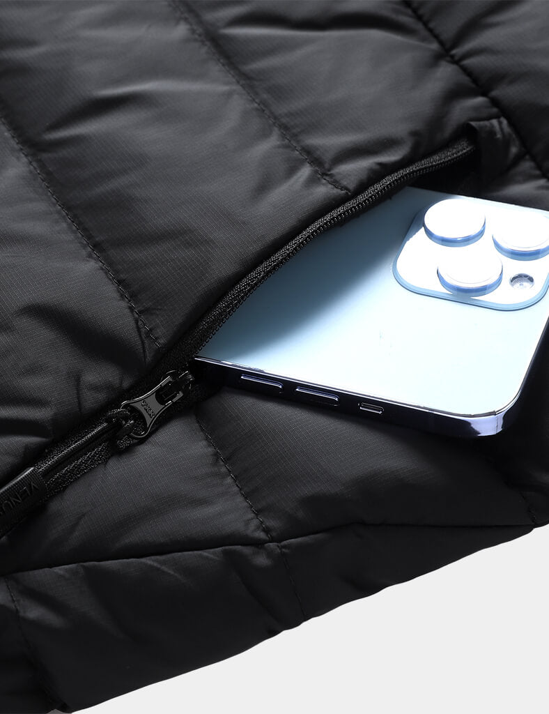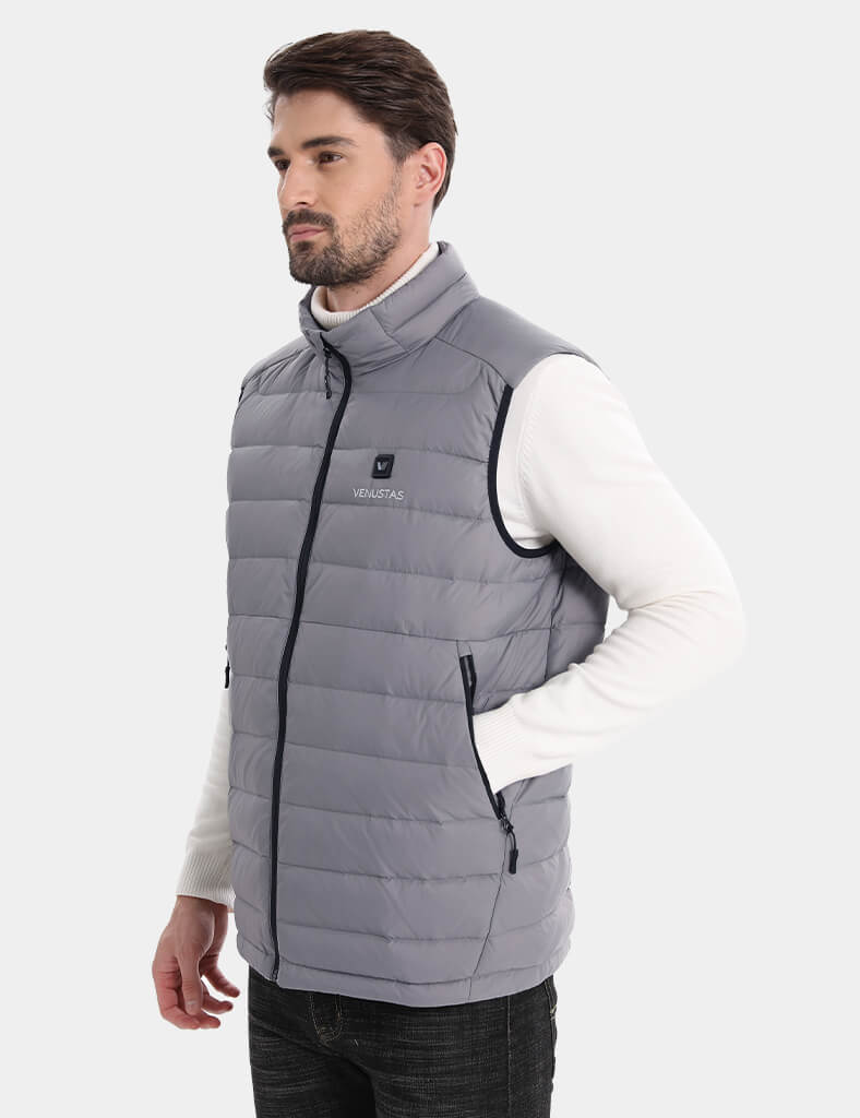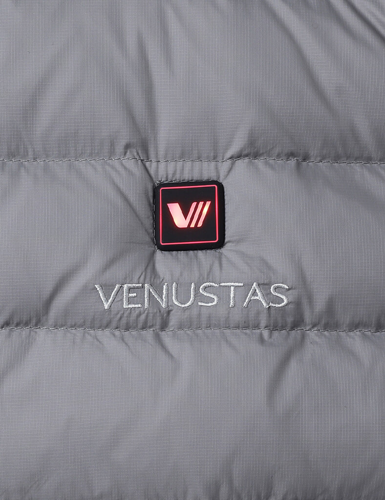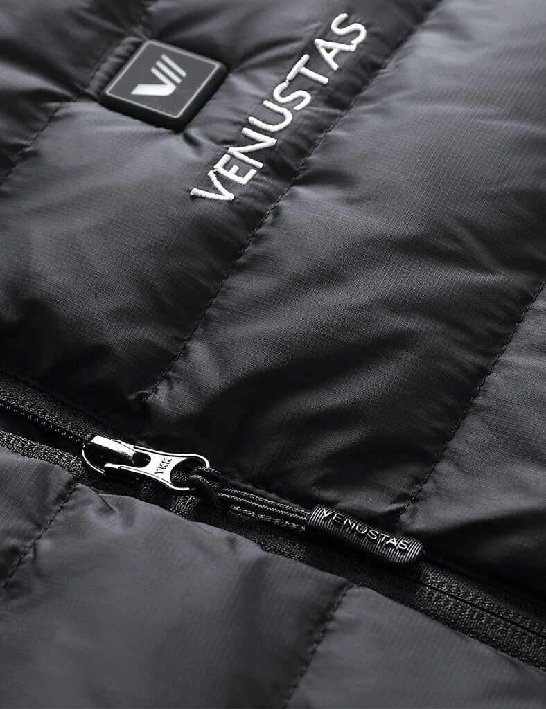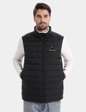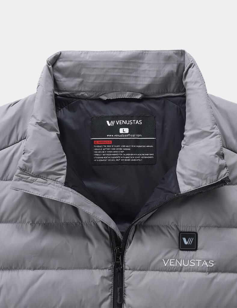 Weighs only 0.99lbs (Medium size), this all-new vest is lighter 30% than ourclassic heated vest.650 fill RDS-certified down features exceptional warmth-to-weight ratio.?Ultralight and highly packable, it’s ideal for mountain activities.Lightweight and water resistance with a shell made of 100% recycled nylon protects against elements.FELLEX? insulation utilized in shoulder prone to moisture keeps you dry and comfortable.Experience optimal soft comfort with our anti-static, graphene-infused lining.Adjustable hem drawstring?offers a snug fit while seal in warmth.RDS-CertifiedDownWater-RepellentShellDurable YKKZipperHeating SystemVenustas-warm? Heating TechnologyAdvanced carbon fiber heating elements provide lightweight comfort and consistent warmth.6 heating zones for all-around warmth: collar, left & right chest, left & right pocket, mid-back.NTC protection and smart clip technology ensure optimal heat and prevent overheating.3 adjustable heating settings with the simple press of the button.3 hrs on high, 5 hrs on medium, 8 hrs on low setting.Battery PerformanceUltra-lightweight at only 6.56 oz, designed for easy portability.7.4V DC output port ensures consistent power for rapid heating.2 output ports allows you to charge 7.4V heated apparel and your mobile service simultaneously.Fully charge in 4 hours (with a 5V/3A charger).Rechargeable up to 1,000 times.UL, CE, FCC, UKCA, and RoHS certified for safety and reliability.Materials & CareMaterialsShell: 100% Recycled NylonLining: 93% Nylon 7% Graphene NylonFilling: 90% White Duck Down 10%