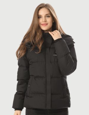 Upgrade DesignThe heated coat for women adopts 90% white duck down and 10% white duck feather, which can provide you extra warmth.Waterproof Premium zippers, accessible pockets and an adjustable hood is specially designed for chilly mornings and can provide extra protection on windy days.Excellent Heating System5 carbon fiber heating elements generates heat across the core body areas (left & right abdomen, left & right chest and mid-back ). And 3 heating levels for adjusting by pressing the button ( 3-4hrs on high, 4-5hrs on medium, 8-9hrs on low heating setting).Charging For Heated CoatType-C charging port enables to heat jacket and charge your phone at the same time. It can heat quickly in seconds with 7.4V.What’s Included1* Heated Apparel1* Battery Pack (5000mAh, 7.4V)1*Carrying?BagTypeDetailsHeating ElementLeft & right abdomen, left & right chest and mid-backHeating LevelPre-heat, high, medium, lowLED ColorPre-heat: red LED blinking|High: red LED|Medium: white LED|Low: blue LEDTemperature SettingHigh: 130???F/55???C|Medium: 113???F/45???C|Low: 95???F/35???CBattery RuntimeHigh: 3-4 hrs|Medium: 4-5 hrs|Low: 8-9 hrsBattery Capacity5000mAh (44.4wh)Battery InputType-C 5V/2.1ABattery OutputDC 7.4V/2.1A; USB 5V/2.1ABattery Weight6.88ozLengthHip-lengthFitRegularShell45% Nylon 55% PolyesterCareMachine washableWarranty1-Year on battery2-Year on heating elements (Official Website ONLY)User Manual DownloadCustomer ReviewsThank you for submitting your reviewWrite a ReviewAsk a QuestionReviews 0Questions 0ReviewsQuestionsSort by:Write a ReviewNameEmailRatingRating ZeroOne StarTwo StarThree StarFour StarFive StarTitle of ReviewHow was your overall experience?Do you recommend this product?YesNoUpload PictureSubmit Your ReviewCancel123Sort by:Ask a QuestionNameEmailQuestionSubmit QuestionCancelAsk your Question about this product123Be the first to review this item
