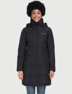 The shell features 100% polyester and a durable water-repellent (DWR) finish to shield you from elements.Recycled down, an eco-friendly sustainable material, provides better insulation and achieve our environmental goals.Graphene lining and long-length design ensure extra warmth for the entire body.Slim-fit design coupled with elastic back wrist combines both warmth and style, and allows for ease of movement.Detailed designs including detachable hood, fleece collar, and YKK zippers enhance the overall performance, making it an ideal heated jacket for women.Slim-FitDesignTwo WayYKK ZipperDurable Water-Repellent FabricHeating SystemExcellent Heating Performance5 carbon fiber heating elements are placed on the core body area to ensure sufficient warmth(left&right pocket, collar, waist, and back).3 adjustable heating settings can provide targeted warmth with a simple press of the power button.3 hrs on high, 6 hrs on medium, 10 hrs on low setting.Portable Battery7.38V/2.4A output can heat up 5 heating elements, and 5V/2.1A output can charge other mobile devices.Heat up to 9 hrs to ensure extended warmth.40% smaller than other Venustas standard batteries, making it portable to carry and charge.CE, FCC&UKCA certified. Ita??s easy and safe to use with an easy-to-access button.Materials & CareMaterialsShell: 100% PolyesterFilling: 75% Recycled Down+25% FeathersLining: 94% Nylon+6% Graphene NylonCareHand WashableDo not iron.Do not dry clean.Do not machine dry.Heating ElementHeating ElementPremium Carbon FiberHeating Zones5 Heating Zones (left&right pocket, collar, waist, and back)Heating ModePre-heat: Red| High: Red |Medium: White| Low: BlueTemperatureHigh: 131a??/55a??, Medium: 113a??/45a??, Low: 100a??/38a??Working HoursHigh: 3HRs, Medium: 6HRs, Low: 10HRsHeating LevelWarmBattery InformationBatteryLithium-ion Battery (with LG cells)Capacity & [email protected] (35.42Wh???Size & Weight3.15??2.6??1.02in, Weight: 6.56oz/186gBattery InputType-C 5V/3ABattery OutputUSB-A 5V/2.1ADC 7.38V/2.4ACharging Time4HRsApparelFitRegularLengthHip-lengthShell100% PolyesterFilling75% Recycled Down+25% FeathersLining94% Nylon+6% Graphene NylonFeatureWater ResistantGeneralCareHand & Machine WashableOcassionsChristmas, Thanksgiving Day, Valentine’s Day, Mother’s Day, Gift IdealSport TypeDaily Commuting, Outdoor Sport Games, Hiking, Camping, WalkingWarranty1 year on Battery2 year on Heating Elements(official website only)User ManualUser Manual DownloadHow long does shipping take and how can I track my package?Usually delivering within 5-7 business days. You can track your package here:https://venustas.aftership.com/Are heated jackets safe?Yes, our heated jackets are safe. However, please ensure not to use the heating function until the vest is completely dry. Additionally, if you have a cardiac device, it is advisable to consult with your doctor or the pacemaker manufacturer before using a heated jacket.Can I wash the heated jacket?Hand washable or machine washable. If machine washing, please use a laundry bag (not included) to prevent the washing machine from damaging the cable. Please dry naturally, do not use the dryer.Can I take a heated jacket?on a plane?Yes, our heated jackets are TSA-friendly. Both the power bank and the heated jacket?can be taken on the plane. However, please note that if you need to check in the heated jacket, remember to take out the power bank and carry it with you.Can I wear a heated jacket?on an airplane?Yes, both our heated jackets and battery can be taken on the plane. Generally, you can use it’s heating function on the plane. However, you should always follow the specific guidelines and requirements of the airline.How long does the heated jacket?last?High:3HRs, Medium:6HRs, Low:10HRs (All heating area working ).How to choose the right size?Choosing the right size is easy! Simply refer to our size guide, which you can find on the product page. Measure your chest, waist, and hips, and match the measurements to the corresponding size on the chart. If you have any specific questions or need assistance, feel free to ask. We want to make sure you get the perfect fit!What power bank for heated jacket?To ensure better results and a longer service life of the heated jacket. Please use our special Venustas-6000 power bank.How to turn on heated jacket?To turn on,press and hold the power button for 3 seconds. The?apparel will begin to preheat for 5minutes (blinking red LED).