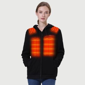 The polyester shell provides excellent water resistance, ensuring protection from light rain or snow.Experience optimal comfort and all-around toasty warmth with the fleece lining.The zipper-up design makes this heated hoodie easy to wear, adding a touch of fashion to your everyday wardrobe.Tailor your fit with elastic cuffs and hem for a super sense of comfort while keeping the chill at bay.PremiumZipperZipperBattery PocketSoftFabricHeating SystemExcellent Heating PerformancePremium carbon fiber heating elements for efficient warmth.Equipped with 5 heating zones: left & right chests, left & right shoulder, and mid-back.3 adjustable heating levels offer the perfect level of warmth.3-3.5 hrs on high, 4.5-5 hrs on medium, 8-9 hrs on low setting.Portable BatteryLightweight design (6.56oz) for excellent portability.Fully charged in 4 hours with a 5V/3A charger.Versatile output ports for charging the heated vest and your mobile phone simultaneously.Rechargeable up to 1000 times for prolonged use.UL, CE, FCC, UKCA & RoHS certified for assured safety.Materials & CareMaterialsShell: 35% Cotton+65% PolyesterLining: 100% Nylon+100% PolyesterCareHand & Machine WashableDo not iron.Do not dry clean.Do not machine dry.Heating ElementHeating ElementPremium Carbon FiberHeating Zones5 Heating Zones (left & right chests, left & right shoulder, and mid-back)Heating ModePre-heat: Red| High: Red |Medium: White| Low: BlueTemperatureHigh: 131a??/55a??, Medium: 113a??/45a??, Low: 100a??/37a??Working HoursHigh: 3-3.5HRs, Medium: 4.5-5HRs, Low: 8-9HRsHeating LevelWarmBattery InformationBatteryLithium-ion Battery (with LG cells)Capacity & [email protected] (35.42Wh???Size & Weight3.15??2.6??1.02in, Weight: 6.56oz/186gBattery InputType-C 5V/3ABattery OutputUSB-A 5V/2.1ADC 7.38V/2.4ACharging Time4HRsApparelFitRegularLengthHip-lengthShell35% Cotton+65% PolyesterFilling/Lining100% Nylon+100% PolyesterGeneralCareHand & Machine WashableOcassionsChristmas, Halloween, Valentine’s Day, Mother’s Day, Father’s Day, New Year, Thanksgiving Day, Labor Day, Sports events and Gift IdealSport TypeHiking, Climbing, Snow Skiing, Snowboarding Daily and Outdoor LifestyleWarranty1 year on Battery2 year on Heating Elements (official website only)User ManualUser Manual DownloadHow long does shipping take and how can I track my package?Usually delivering within 5-7 business days. You can track your package here:https://venustas.aftership.com/Are heated hoodies?safe?Yes, our heated hoodies are safe. However, please ensure not to use the heating function until the hoodie is completely dry. Additionally, if you have a cardiac device, it is advisable to consult with your doctor or the pacemaker manufacturer before using a heated hoodie.Can I wash the heated hoodie?Hand washable or machine washable. If machine washing, please use a laundry bag (not included) to prevent the washing machine from damaging the cable. Please dry naturally, do not use the dryer.Can I take a heated hoodie?on a plane?Yes, our heated hoodies are TSA-friendly. Both the power bank and the heated hoodie?can be taken on the plane. However, please note that if you need to check in the heated hoodie, remember to take out the power bank and carry it with you.Can I wear a heated hoodie?on an airplane?Yes, both our heated hoodies and battery can be taken on the plane. Generally, you can use it’s heating function on the plane. However, you should always follow the specific guidelines and requirements of the airline.How long does the heated hoodie?last?High:3-4HRs, Medium:4-5HRs, Low:8-10HRs(All heating area working ).How to choose the right size?Choosing the right size is easy! Simply refer to our size guide, which you can find on the product page. Measure your chest, waist, and hips, and match the measurements to the corresponding size on the chart. If you have any specific questions or need assistance, feel free to ask. We want to make sure you get the perfect fit!What power bank for heated jacket?To ensure better results and a longer service life of the heated jacket. Please use our special Venustas-6000 power bank.How to turn on heated jacket?To turn on,press and hold the power button for 3 seconds. The?apparel will begin to preheat for 5minutes (blinking red LED).