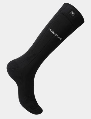 Crafted with core-spun technology, these socks feature excellent moisture-wicking to keep your feet dry and odor-free.The durable polyester-blend fabric stands up to daily wear and tear like a champ.The yarn of these socks is tightly woven for extra support and a fit that stays in place all day.High-stretch ribbed cuffs with a stay-put fit that maintains a held-in feel and prevents slippage.Easy access to the battery with the handy flip-top pocket.Core-spunTechnologyHigh-stretchRibbed CuffsFlip-TopBattery PocketHeating SystemVenustas-Warm? Heating TechnologyUltra-fine composite heating wires provide instant warmth without adding bulk.Heat on the forefoot for targeted warmth and optimal comfort.3 heating settings (High, medium, low) with a simple press of the button.3.5 hours on high, 5.5 hours on medium, and 11 hours on the low setting.Smart technology automatically adjusts to medium heat after 15 minutes on high level.Battery PerformanceTwo 7.4V/2000mAh batteries heat up fast and keep you warm for up to 11 hours.7.4V DC output port delivers consistent power for quick heat.Lightweight at just 70g, these batteries are easy to place and allow for ease movement.Fully charge in 2 hours with an 8.4V/1A charger.Safety certified by UL, CE, FCC, UKCA, and RoHS.Materials & CareMaterialsMaterial: 25%?Acrylic