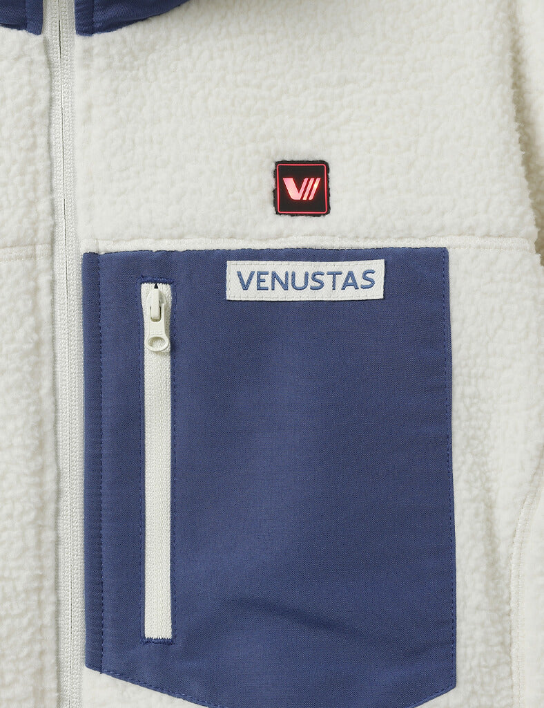Ultra-warm 100% recycled sherpa traps heat and wicks moisture for lightweight outdoor protection.Experience lightweight warmth and breathability with the anti-static graphene lining.The contrast color-blocking adds a touch of flair that’s perfect for layering with your favorite looks.Two zippered hand pockets and one chest pocket provide easy access for convenient storage.Elastic hem and cuffs offer versatile comfort while keeping out the cold.Ultra-SoftRecycled SherpaConvertibleCollarColorblockChest PocketHeating SystemVenustas-Warm? Heating TechnologyUltra-thin carbon fiber heating elements offer lightweight comfort and consistent warmth.5 heating zones in collar, left & right hand pocket, mid-back, and low-backNTC protection and smart clip technology ensure optimal heat and prevent overheating.3 adjustable heating settings with a simple press of the button.3 hrs on high, 6 hrs on medium, 10 hrs on low setting.Battery PerformanceUltra-lightweight at only 6.56 oz, designed for easy portability.7.4V DC output port ensures consistent power for rapid heating.2 output ports for charging 7.4V heated apparel and mobile service simultaneously.Fully charge in 4 hours (with a 5V/3A charger).