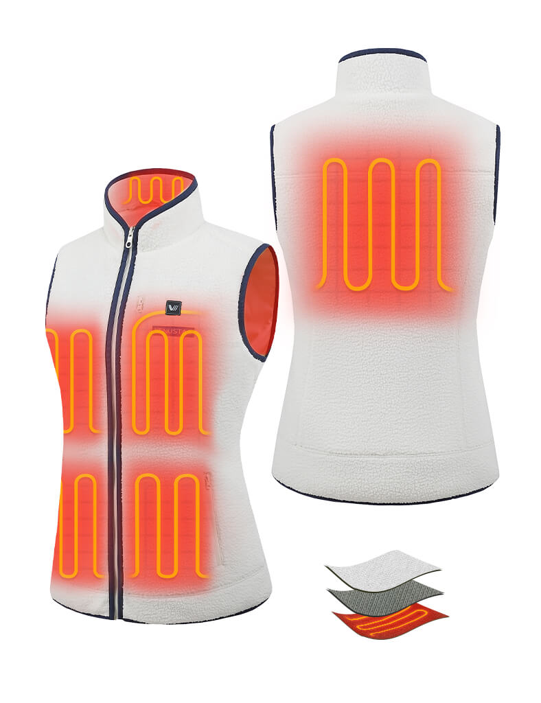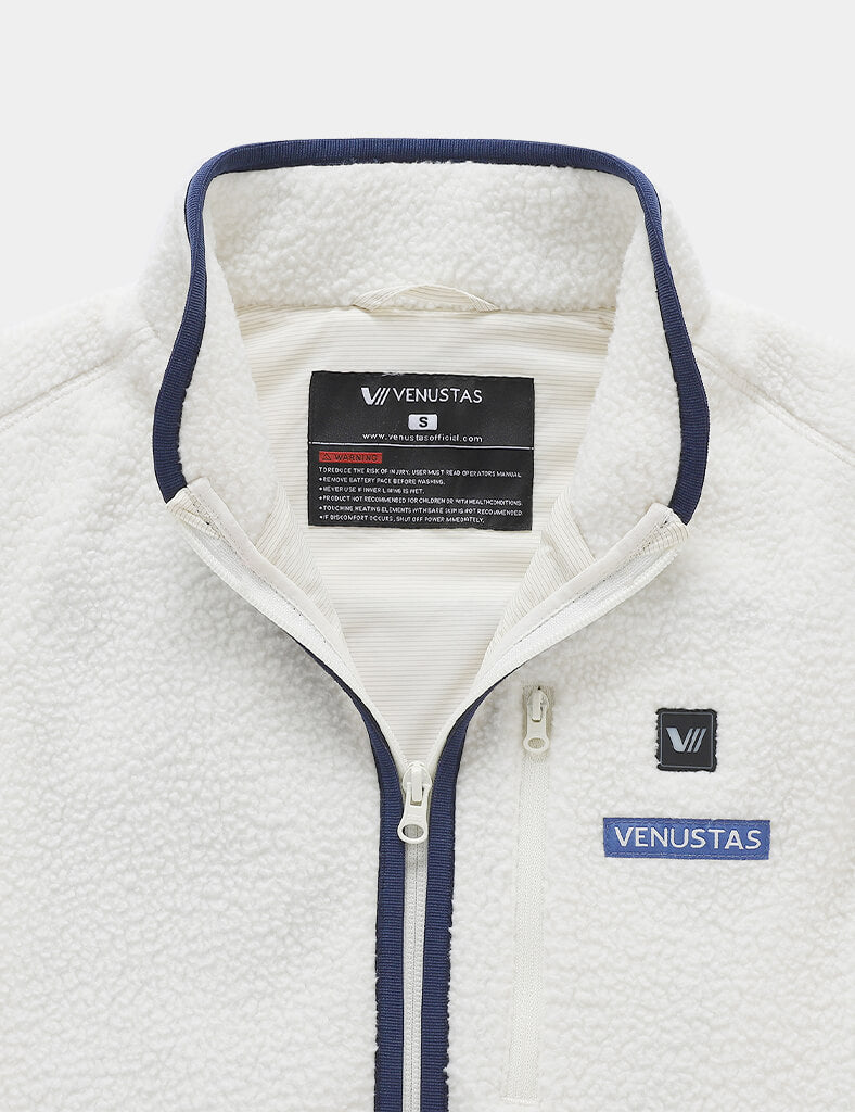 Made from plush 100% recycled sherpa for easy-wearing warmth and exceptional comfort.The anti-static graphene lining provides lightweight warmth and breathability for everyday wear.The color-blocking design with a convertible collar rocks a chic style.Two zippered hand pockets and one chest pocket keep your essentials secure and accessible.Elastic hem?seal out cool air for a snug fit.Ultra-SoftRecycled SherpaConvertibleCollarColorblockChest PocketHeating SystemVenustas-Warm? Heating TechnologyUltra-thin carbon fiber heating elements offer lightweight comfort and consistent warmth.6 heating zones in collar, left & right chest, left & right hand pocket, mid-back.NTC protection and smart clip technology ensure optimal heat and prevent overheating.3 adjustable heating settings with a simple press of the button.3 hrs on high, 6 hrs on medium, 10 hrs on low setting.Battery PerformanceUltra-lightweight at only 6.56 oz, designed for easy portability.7.4V DC output port ensures consistent power for rapid heating.2 output ports for charging 7.4V heated apparel and mobile service simultaneously.Fully charge in 4 hours (with a 5V/3A charger).