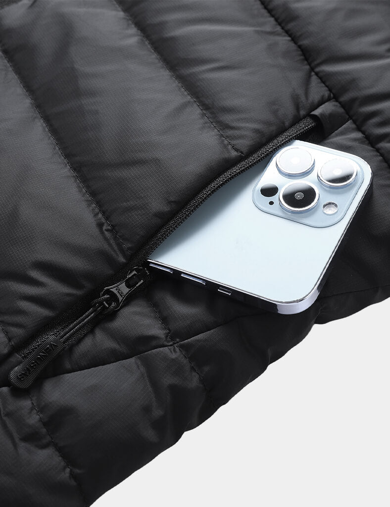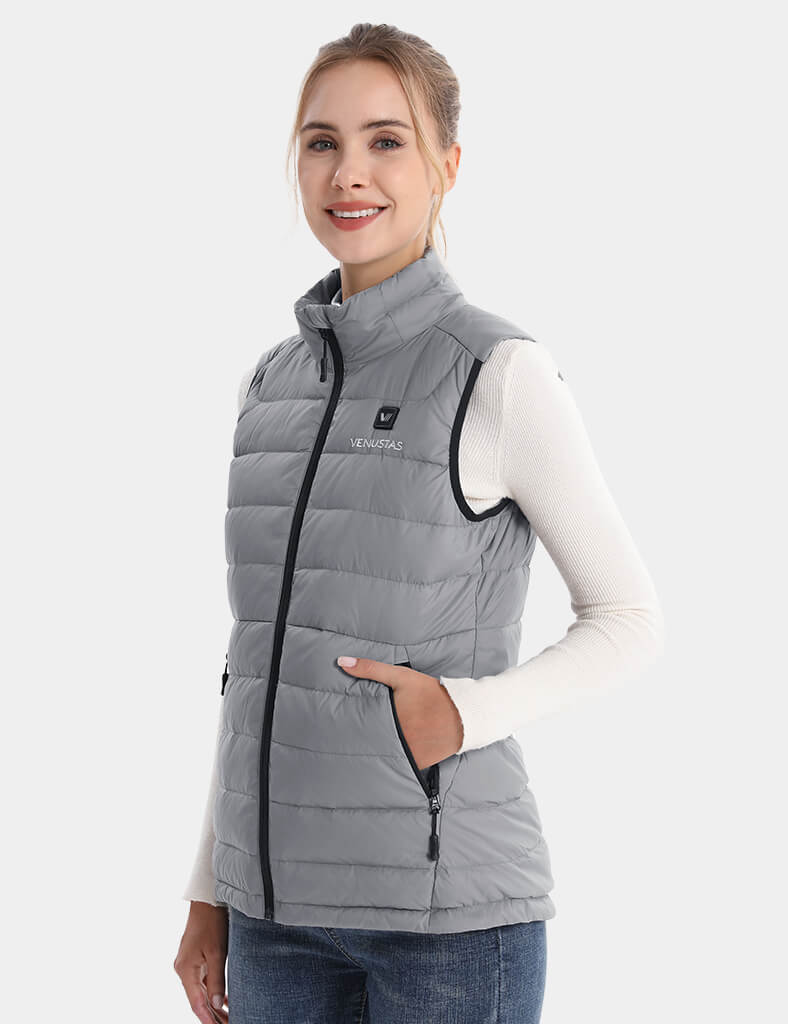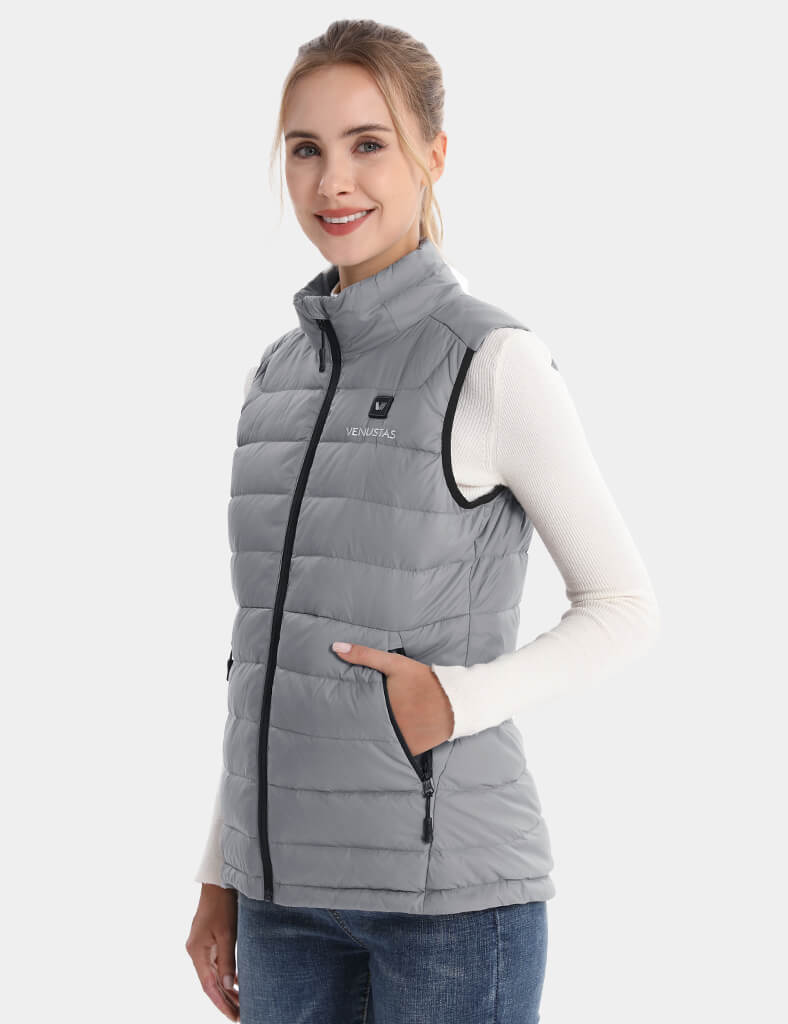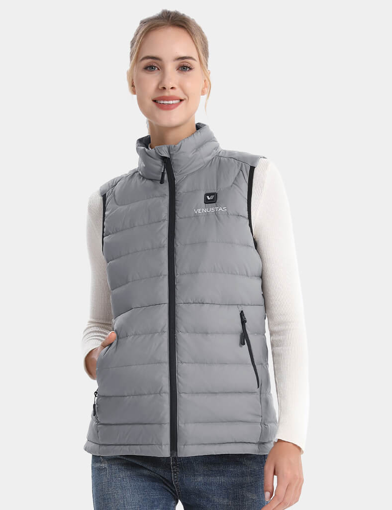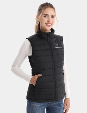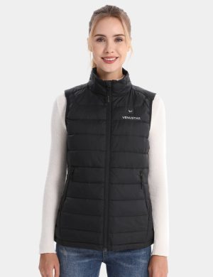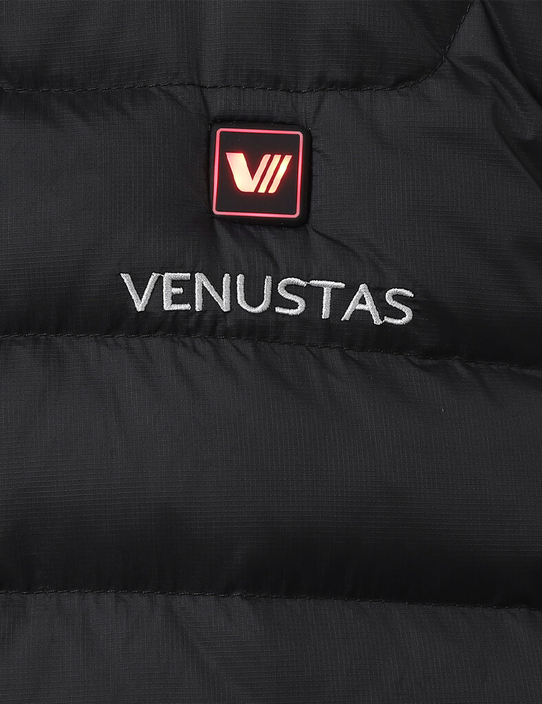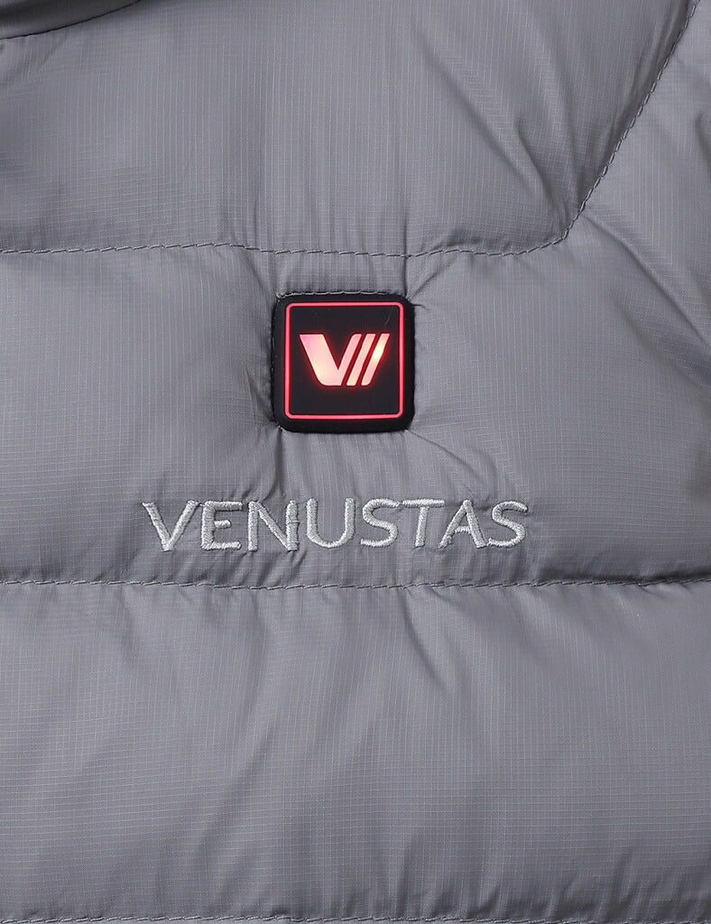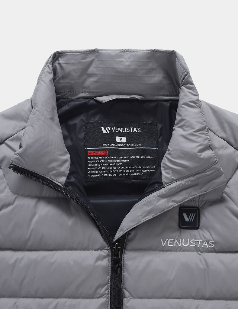 Weighs only 0.88lbs (Small size), this all-new vest is lighter 30% than ourclassic heated vest.650 fill RDS-certified down features exceptional warmth-to-weight ratio.?Ultralight and highly packable, it’s ideal for mountain activities.Lightweight and water resistance with a shell made of 100% recycled nylon protects against elements.FELLEX? insulation utilized in shoulder prone to moisture keeps you dry and comfortable.Experience optimal soft comfort with our anti-static, graphene-infused lining.Adjustable hem drawstring offers a snug fit while seal in warmth.RDS-CertifiedDownWater-RepellentShellDurable YKKZipperHeating SystemVenustas-Warm? Heating TechnologyAdvanced carbon fiber heating elements provide lightweight comfort and consistent warmth.6 heating zones for all-around warmth: collar, left & right chest, left & right pocket, mid-back.NTC protection and smart clip technology ensure optimal heat and prevent overheating.3 adjustable heating settings with the simple press of the button.3 hrs on high, 5 hrs on medium, 8 hrs on low setting.Battery PerformanceUltra-lightweight at only 6.56 oz, designed for easy portability.7.4V DC output port ensures consistent power for rapid heating.2 output ports allows you to charge 7.4V heated apparel and your mobile service simultaneously.Fully charge in 4 hours (with a 5V/3A charger).Rechargeable up to 1,000 times.UL, CE, FCC, UKCA, and RoHS certified for safety and reliability.Materials & CareMaterialsShell: 100% Recycled NylonLining: 93% Nylon 7% Graphene NylonFilling: 90% White Duck Down 10%