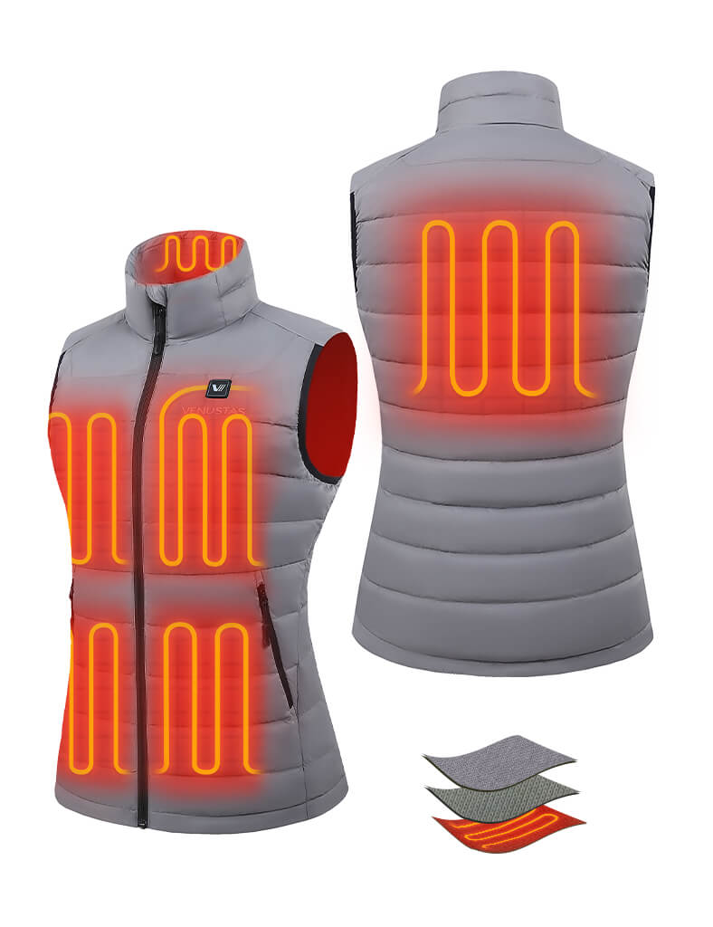 FeathersLining93% Nylon 7% Graphene NylonFeatureWater ResistantGeneralCareHand & Machine WashableOcassionsChristmas, Thanksgiving Day, Valentine’s Day, Father’s Day, Birthday, Gift IdealSport TypeCamping & Hiking, Hunting, Golf, Skiing, Riding, Daily and Outdoor LifestyleWarranty1 year on Battery2 year on Heating Elements(official website only)User ManualUser Manual DownloadHow long does shipping take and how can I track my package?Usually delivering within 5-7 business days. You can track your package here:https://venustas.aftership.com/Are heated vests safe?Yes, our heated vests are safe. However, please ensure not to use the heating function until the vest is completely dry. Additionally, if you have a cardiac device, it is advisable to consult with your doctor or the pacemaker manufacturer before using a heated vest.Can I wash the heated vest?Hand washable or machine washable. If machine washing, please use a laundry bag (not included) to prevent the washing machine from damaging the cable. Please dry naturally, do not use the dryer.Can I take a heated vest?on a plane?Yes, our heated vests are TSA-friendly. Both the power bank and the heated vest can be taken on the plane. However, please note that if you need to check in the heated vest, remember to take out the power bank and carry it with you.Can I wear a heated vest on an airplane?Yes, both our heated vests and battery can be taken on the plane. Generally, you can use it’s heating function on the plane. However, you should always follow the specific guidelines and requirements of the airline.How long does the heated vest last?High:3HRs, Medium:5HRs, Low:8HRs(All heating area working ).How to choose the right size?Choosing the right size is easy! Simply refer to our size guide, which you can find on the product page. Measure your chest, waist, and hips, and match the measurements to the corresponding size on the chart. If you have any specific questions or need assistance, feel free to ask. We want to make sure you get the perfect fit!What power bank for heated vest?To ensure better results and a longer service life of the heated vest. Please use our special Venustas-6000 power bank.How to turn on heated vest?To turn on,press and hold the power button for 3 seconds. The?apparel will begin to preheat for 5minutes (blinking red LED).